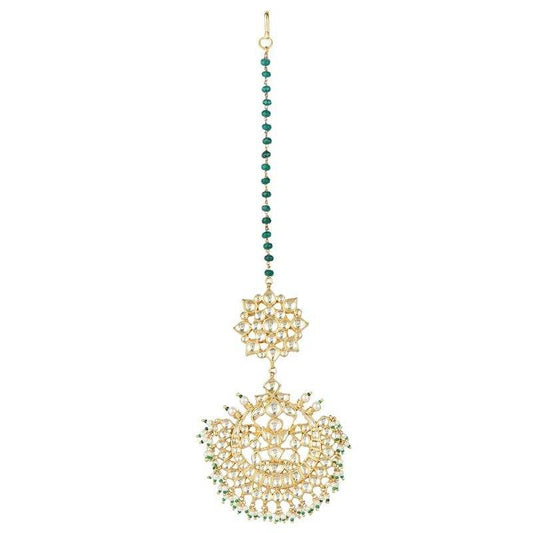 Moissanite Kundan Maangtikka – Gold-Plated Bridal Headpiece