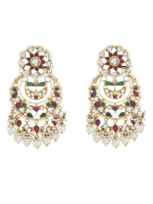 Polki Chandelier Earrings with Multicolor Stones and Pearl Drops