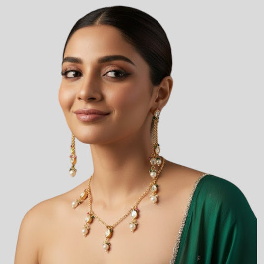 Gold-Plated Kundan Necklace & Earrings Set for Women