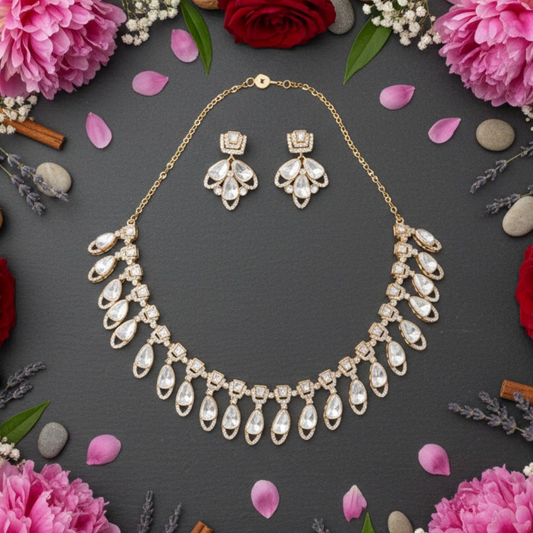 Gold-Plated White AD Stone Bridal Necklace Set with Earrings