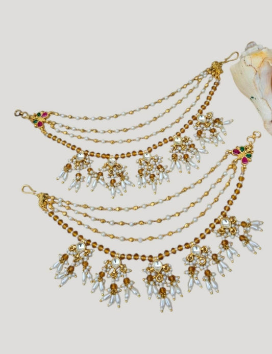 Traditional Kundan & Pearl Multi-Layer Kaan Chain