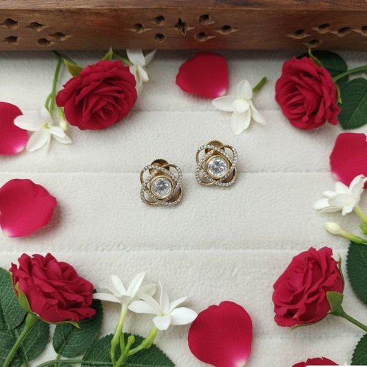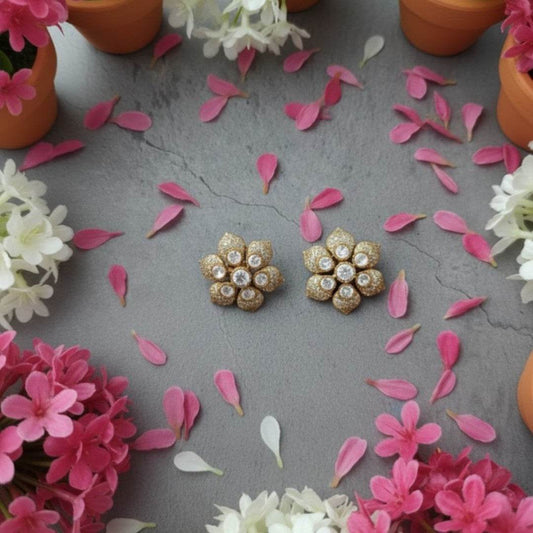 Gold-Plated Floral Stud Earrings with CZ Stones for Women