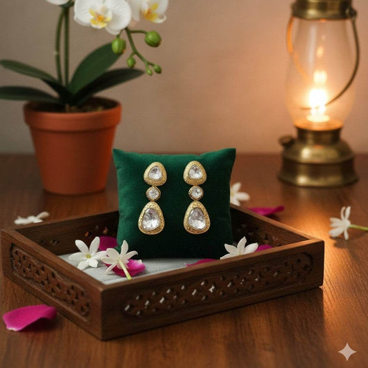 Elegant Gold-Plated Triple Stone Kundan Earrings
