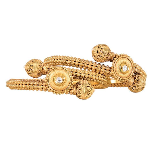 Antique Gold-Plated Traditional Beaded Bangles with Center Stone for Women