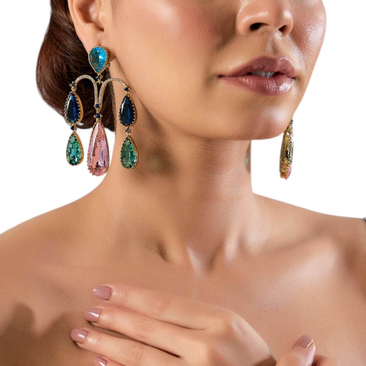 Gold-Plated Multi-Color Teardrop Statement Earrings