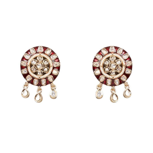 Classic Red Gold Round Kundan Drops Earrings for Women