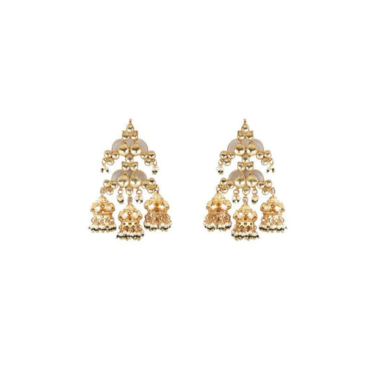 Antique Gold Temple Earrings with Green Accents and Bell Charm