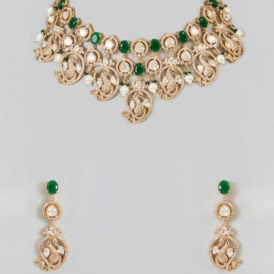 Heritage Bridal Kundan Necklace Set with Green Drops