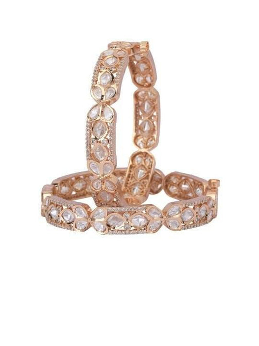 Rose Gold Plated Kundan Bangles with Clear Stones – Set of 2