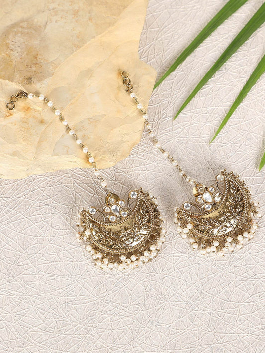 Vintage Gold Bridal Ear Cuff Earrings with Pearl Chains and Kundan Embellishments