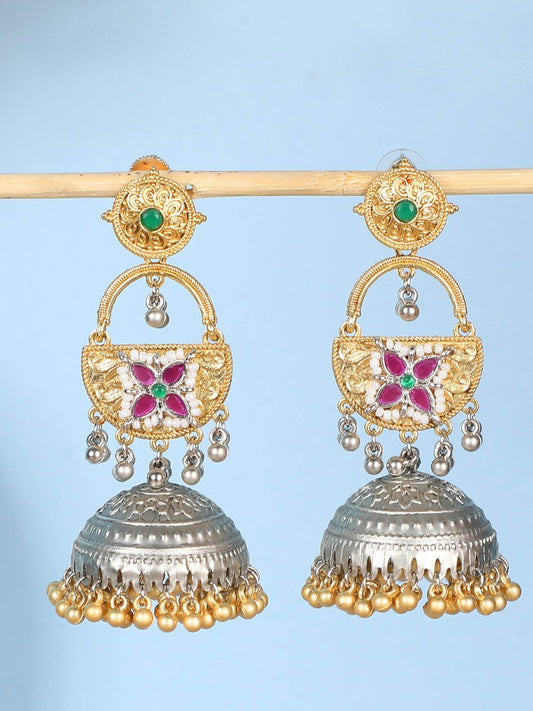 Vintage Oxidized Silver Gold Plated Jhumka Earrings with Kundan Pearl Embellishments