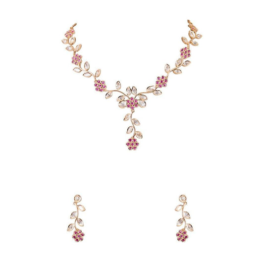 Gold-Toned Floral Kundan Necklace Set featuring Pink Stone Accents