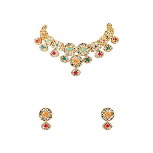 Multicolor Kundan Bridal Choker Necklace Set with Matching Earrings