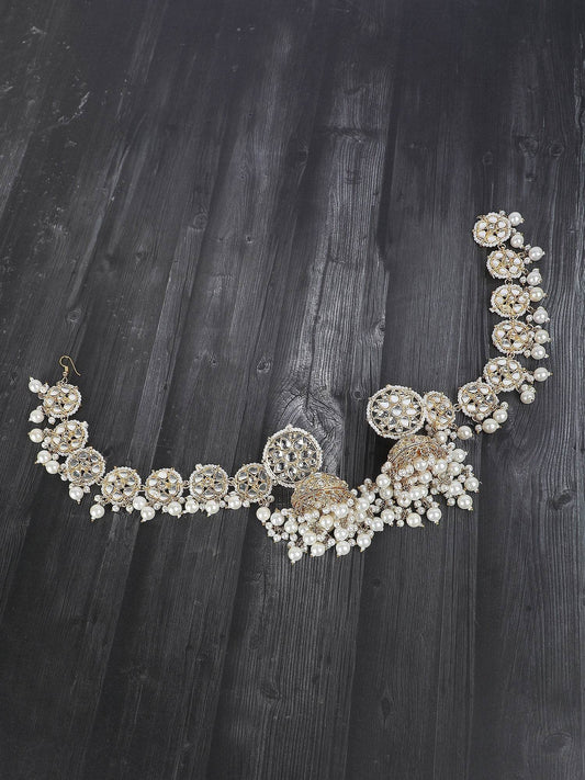 Gold-Plated Dome Shaped Jhumka With Hair Chain