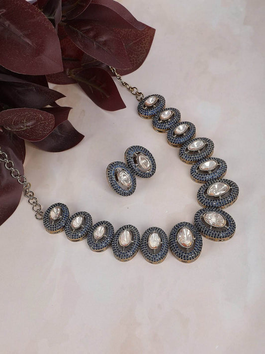 Gold-Plated Handcrafted Choker Necklace Set with Blue Crystal Accents