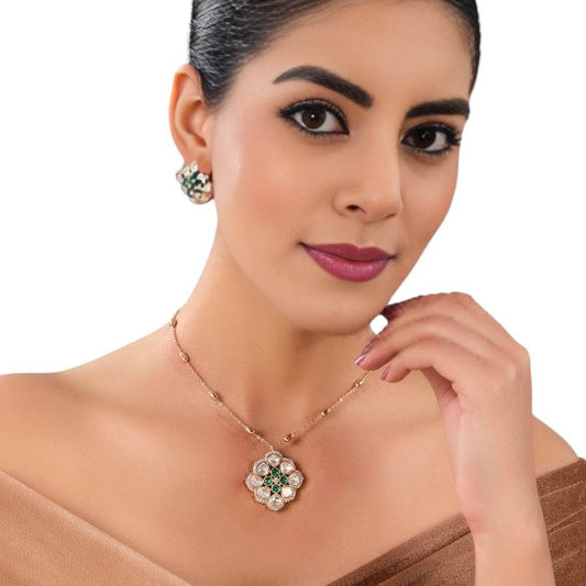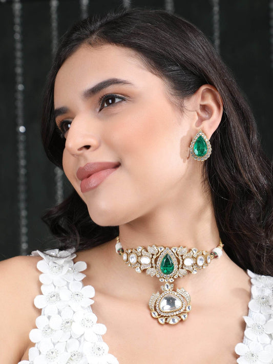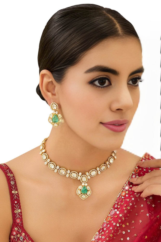 Gold Plated Kundan Polki & Green Stone Choker Necklace Set