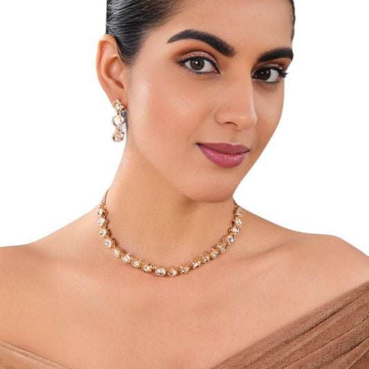 Beautiful Gold-Colored Kundan Necklace Set with Earrings Pendant Necklace