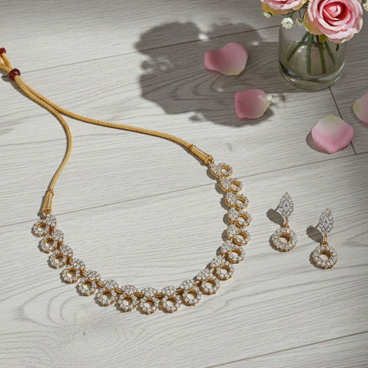 Stylish Diamond Circular Motif Necklace Set with Earrings