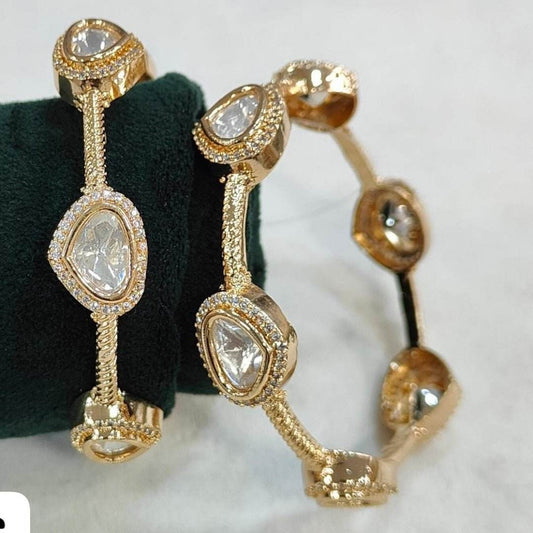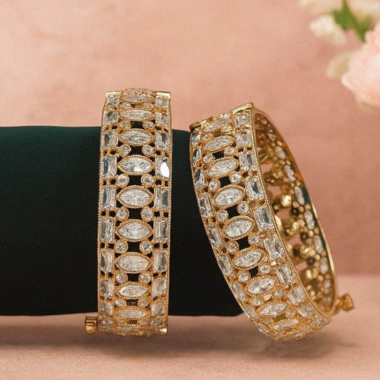 Gold-Plated Minimal Kundan-Style Open Bangles with White Stones