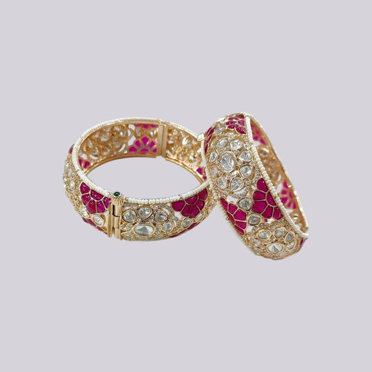 Gold-Plated Kundan Bangles with Pink Enamel Detailing