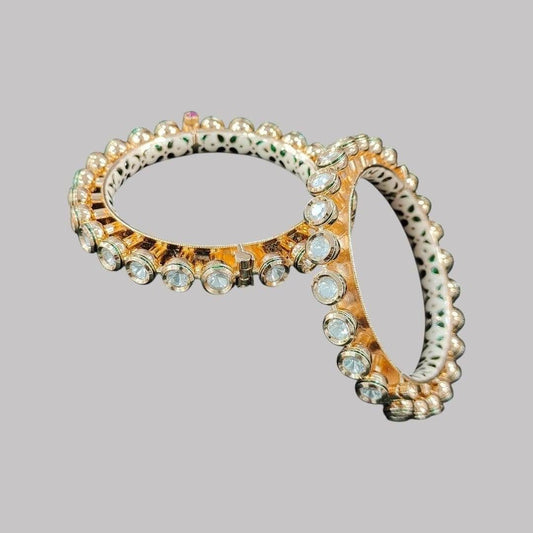 Premium Gold-Plated Openable Kundan Bangles with White Enamel Detailing for Women