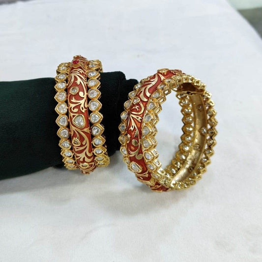 Royal Red Enamel Kundan Studded Gold-Plated Bangles for Women