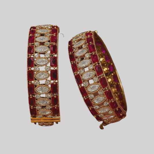 Antique Gold-Plated White & Ruby Red Stone Bangles for Women
