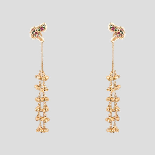 Traditional Long Golden Dangler Earrings with Multi-Strand Pearl Chains