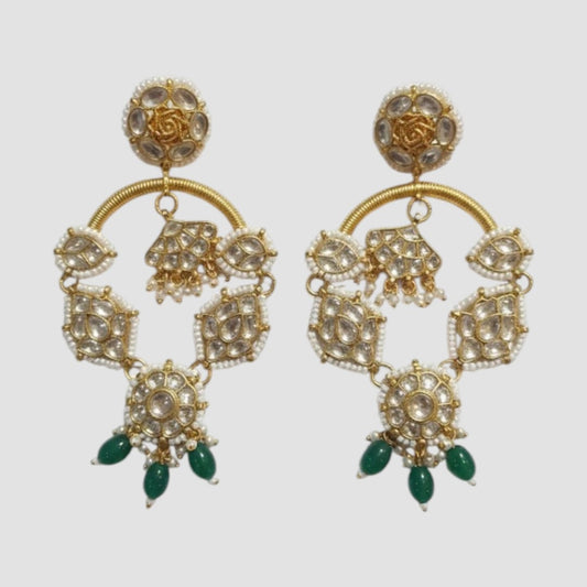 Traditional Gold-Plated Kundan & Emerald Green Jhumka Earrings for Women