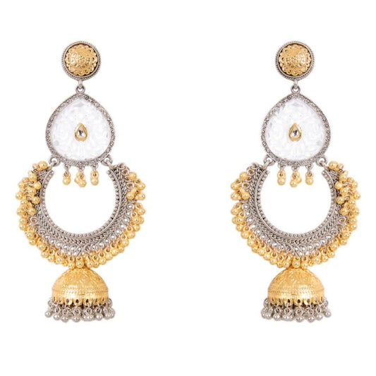 Dual-Tone Ethnic Dangler Earrings with Filigree Design & Jhumka Bell