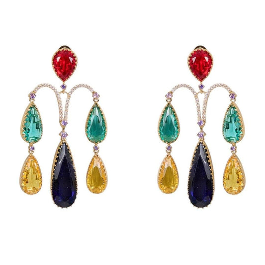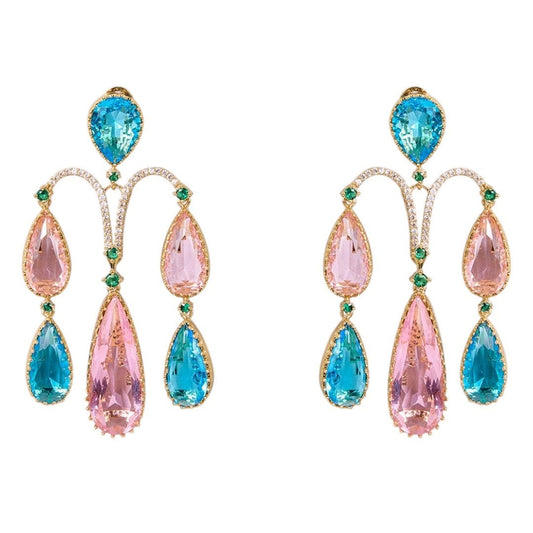 Luxury Pastel Teardrop Dangler Earrings in Blue & Pink with Gold-Tone Finish