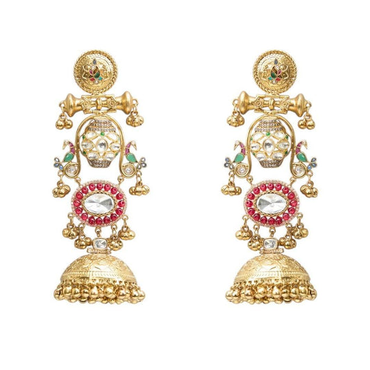 Chandbali Jhumka Dual-Tone Earrings with Ruby Stone & Detailing Ghungroo