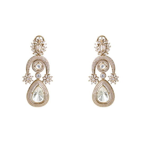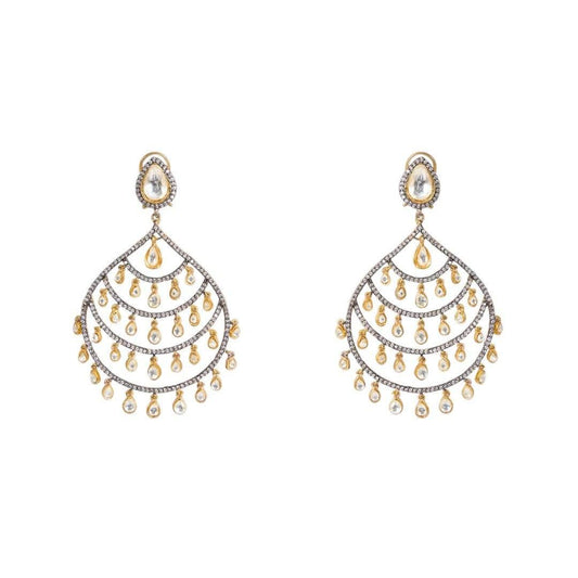 Gold Plated Fan-Shaped Chandbali Party Statement Earrings
