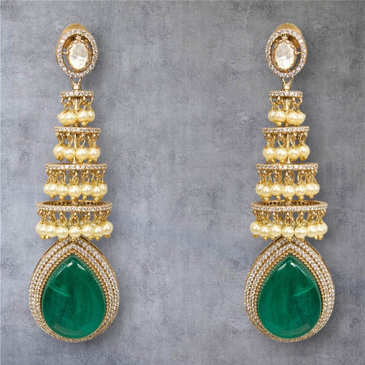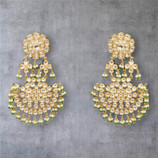 Gold-plated Kundan dome jhumka earrings with green bead Chandbaali - perfect ethnic party jewelry