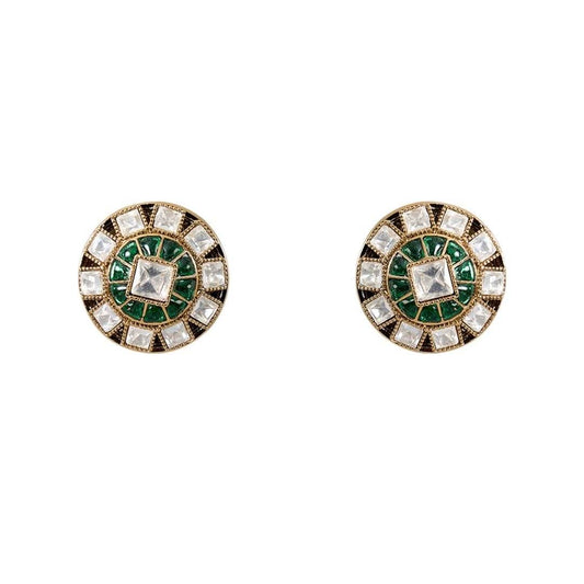 Gold Finish Kundan Stone Choker Necklace Set with Emerald Enamel Detailing