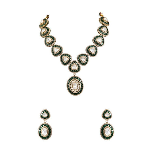 Emerald Beaded Kundan Necklace with Teardrop Pendant