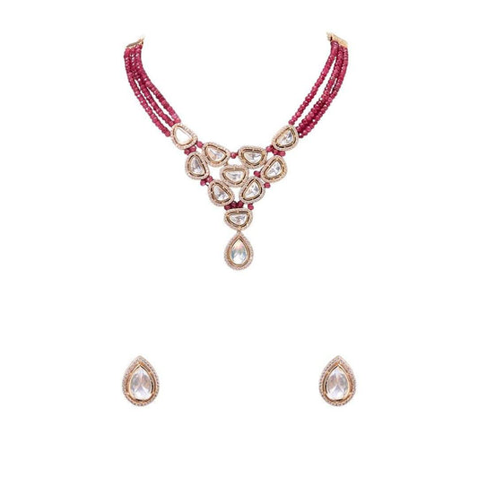 Ruby Beaded Necklace Set with Kundan Teardrop Pendant