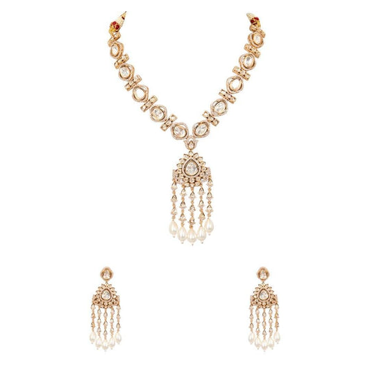 Polki Kundan Pearl Drop Necklace Set.