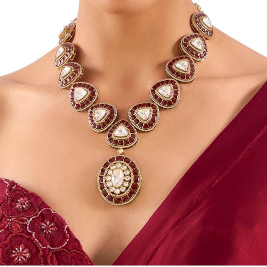 Timeless Red & Kundan Teardrop Necklace Set with Oval Pendant