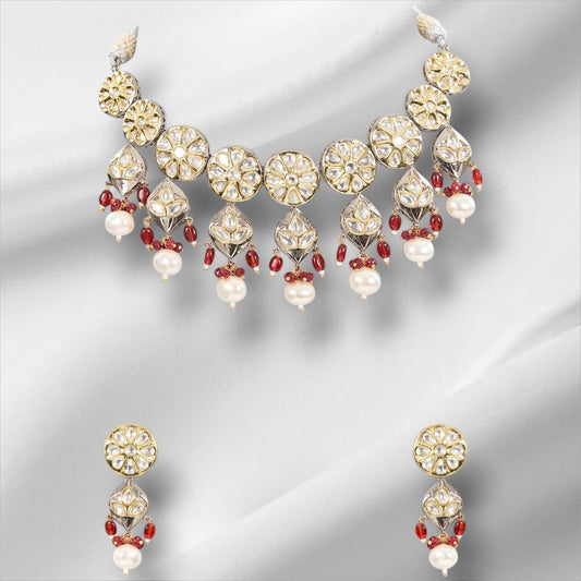 Classic Polki Kundan Necklace & Stud Earrings Set