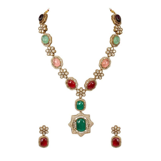Stunning Kundan Polki Necklace Set of Colored Stones Moissanite Jewelry