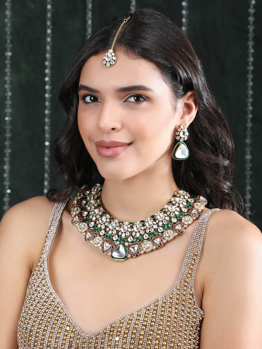 Kundan Polki Choker Necklace Set with Earrings and Maangtikka