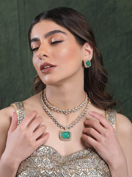 Gold Plated Kundan Polki & Green Stone Choker Necklace Set