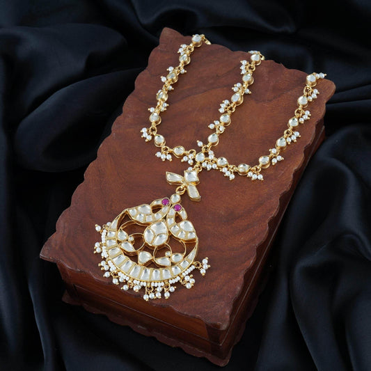 Gold Finish Kundan Stone & Pearl Chain Mathapatti