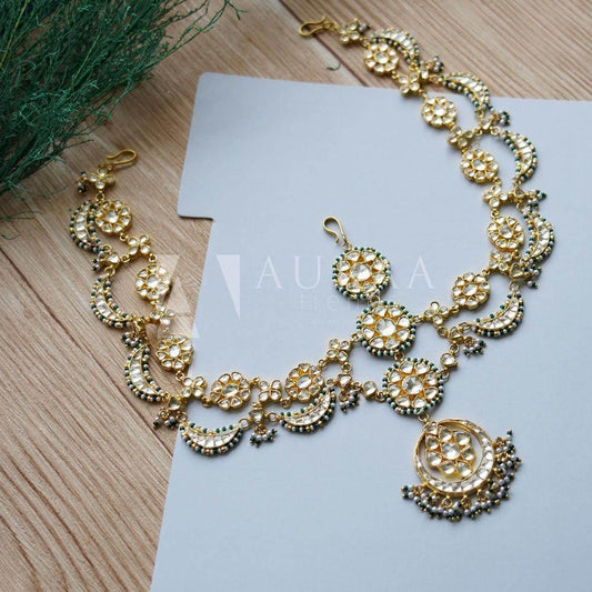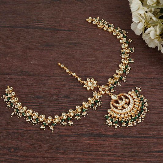 Gold Finish Green Beaded Mathapatti