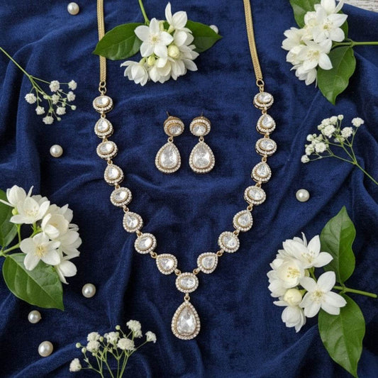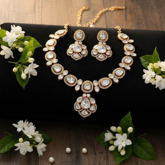 Bridal Kundan-Style White Stone Necklace Set with Earrings