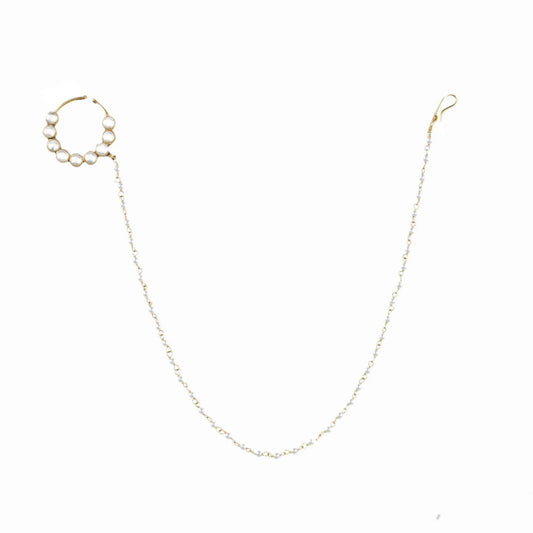 Gold Finish Pearl Chain Nath