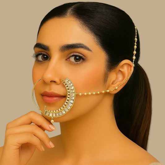 Step into the spotlight with our enchanting Nath, meticulously crafted to adorn your beauty with a touch of tradition.