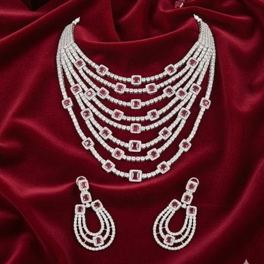 Luxury Silver-Plated Choker Necklace Set with Ruby Red Stones