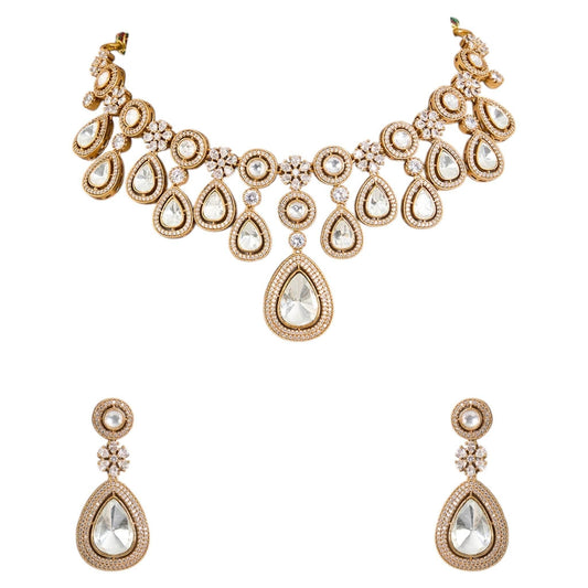 Classic White Kundan Choker Necklace Set with Earrings for Bridal & Wedding Wear